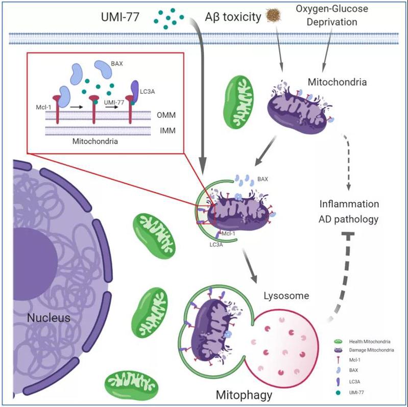 该研究发现,MCL-1是一种新的线粒体自噬受体蛋白;UMI-77可以通过释放游离的MCL-1蛋白诱导线粒体自噬,并逆转阿尔兹海默症的病理学特征。该研究提示,MCL-1是一个治疗阿尔兹海默症的新药物靶点;诱导线粒体自噬是治疗阿尔兹海默症的有效策略。