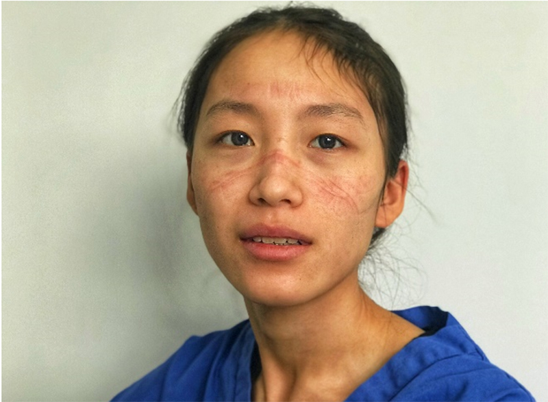 获奖点评:尽管伤痕累累,尽管头发凌乱,尽管略显疲惫,但依然有着坚毅的眼神,充满着对战胜疫情的信心,稚嫩的脸庞承担着与她不相称时代的重任,让观众多了一份心痛和感动,无需任何摄影技巧,也无需化妆,更无需美颜,她就是最美的“战”疫人。