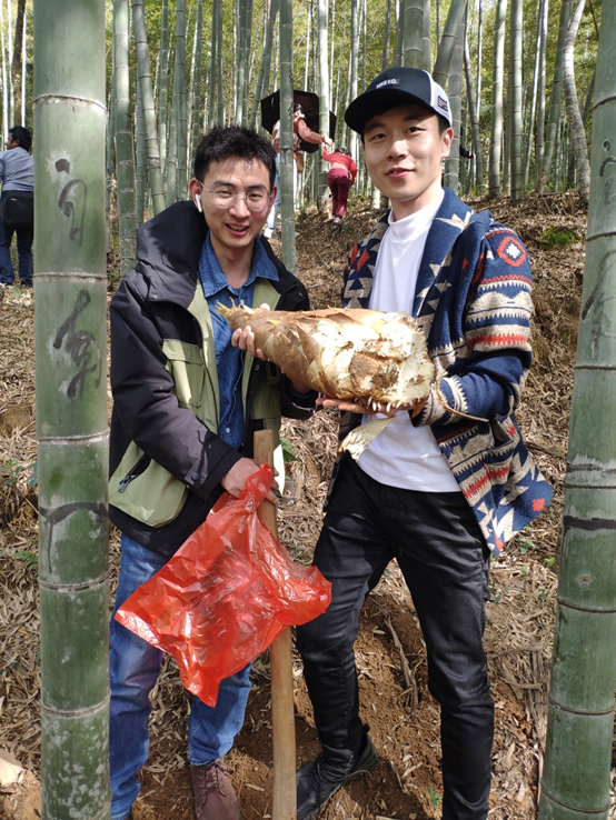 下午1时许大家用过简单又美味的午餐,开始第二站行程,前往长兴县煤山仰峰岕挖笋。清明临近,雨后春笋出土,其肉质鲜嫩、美味爽口,是人们喜欢的佳肴之一。经导游联系,在山庄村民指引下,大家分组进竹林挖笋。1个半小时后大家再次集合时,双手捧着刚挖出的新鲜毛竹笋,脸上堆满了笑意,体验了劳动后收获的喜悦!