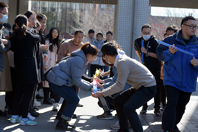 参加“独立支撑”项目的队员坚持不懈,争抢第一;“水到渠成”的队员前后衔接配合默契,不断延长“水渠”长度,最终将球运送到终点。整个活动持续1个多小时,比赛现场气氛热烈,每个人都在赛场上或奋力奔跑或加油打气,呈现出一片热闹的景象。