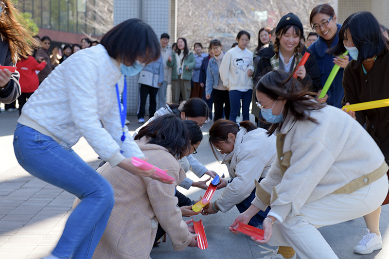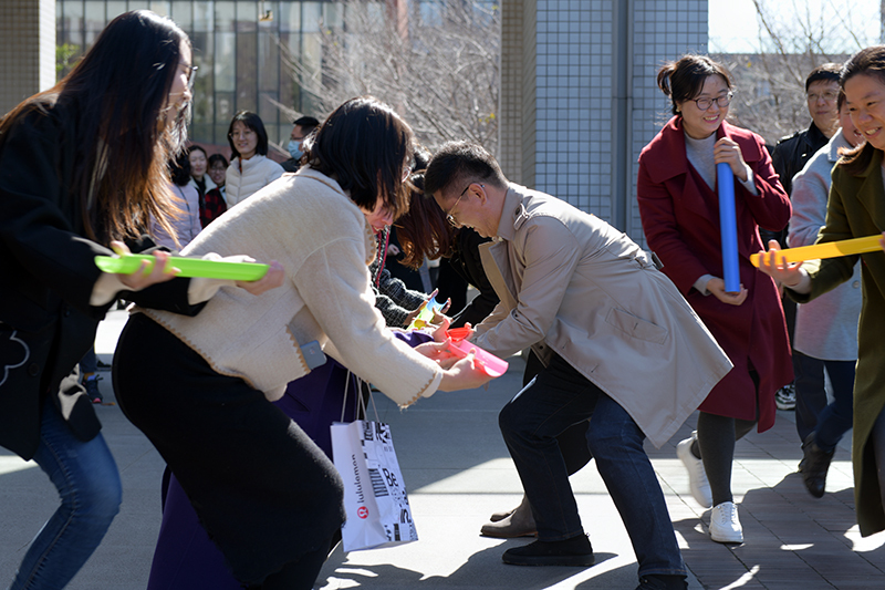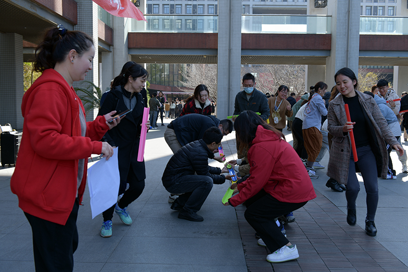 近300余名教职工齐聚银河线路检测中心综合楼前庭院,承担现场组织任务的公卫和脑院工会工作人员布置了活动现场,准备了活动器材,活动以团体赛形式举行,每支队伍由10名教职工组成。体艺部韦俊芳老师担任总裁判,指令发出后,两个项目同时展开比赛。