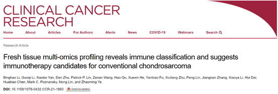 附属二院叶招明教授团队《Clin Cancer Res》发文揭示普通型软骨肉瘤的免疫治疗获益人群