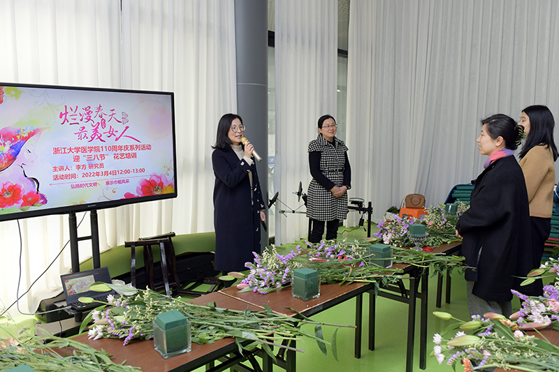 活动现场鲜花锦簇,大家纷纷用插花展现心中的幸福之情,尽显春意盎然和温馨气氛。此次活动的举办,既让女同志们在繁忙的工作之余,感受生活带来的温情与诗意,同时引导大家以阳光健康的心态,怀着对工作生活的热爱,立足岗位,精益求精,同心同力为浙大医学事业发展贡献力量。