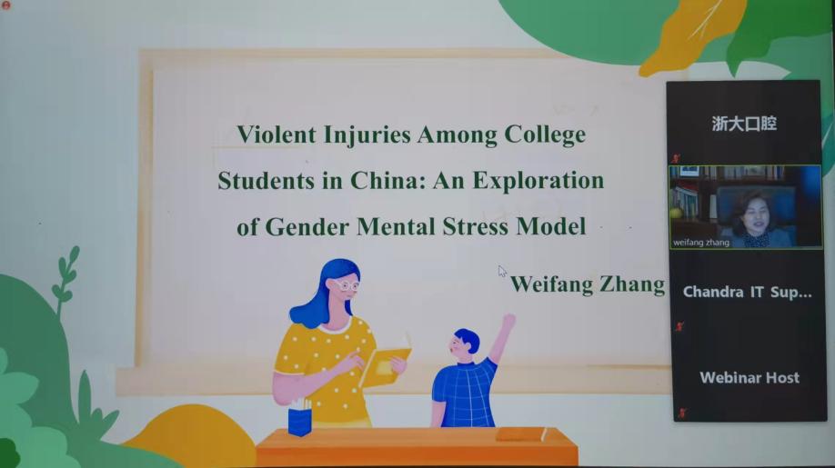 章伟芳研究员围绕“Violent Injuries Among College Students in China: An Exploration of Gender Mental Stress Model”作了专题发言。她分享了研究团队多年来在暴力伤害成为重大公共卫生问题的研究背景下,基于社会生态学理论以及刺激-认知-反应理论,对22所高高校的医学生的调查研究。旨在从个人和环境层面探索与暴力伤害相关的性别和心理压力模型,同时验证心理压力和其他因素是如何影响暴力伤害的。