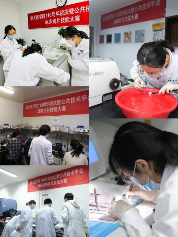 本次赛事涉及六大分平台,比赛项目丰富多样,技能大赛和趣味大赛参赛人数多达一百多人,技能大赛包括石蜡切片、冰冻切片、包埋小能手、显微注射、溶液定容、脾脏原代细胞提取等共六项;趣味大赛包括看图大赛、垒盒子、谁能辨雌雄、密度梯度缓冲液配制、冰冻切心、精密称量及点样画图共七项。从激烈的技能比赛到活泼的趣味比赛项目中,同学们个个化身“武林高手”,让我们直击比赛现场,感受下紧张刺激又有趣的比赛氛围吧!