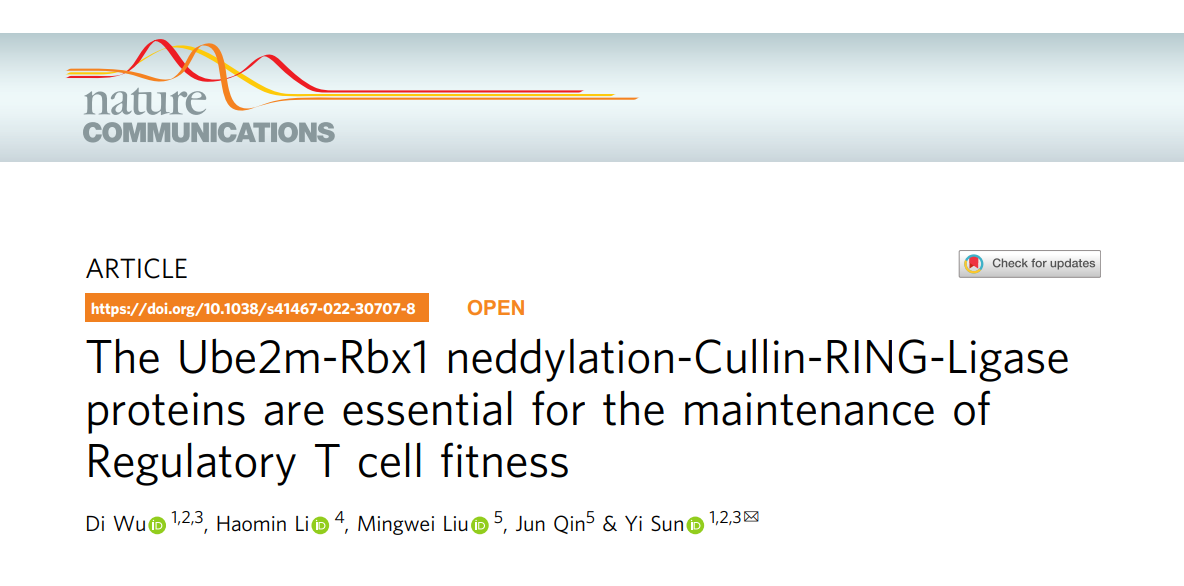 Nat Commun|银河线路检测中心转化医学研究院孙毅教授课题组发现Ube2m-Rbx1拟素化-泛素化轴维持调节性T细胞的功能特性