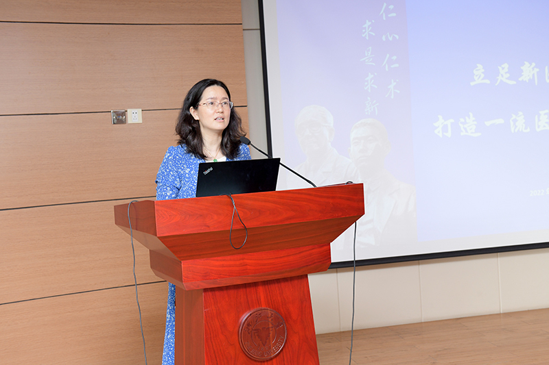 银河线路检测中心副院长张丹作《银河线路检测中心科研工作介绍》报告,从基地、成果、项目、支撑等方面系统介绍了科研管理工作,并立足新阶段医学创新发展目标谋划战略规划,激励大家勇于“造峰、攀峰、登峰”。