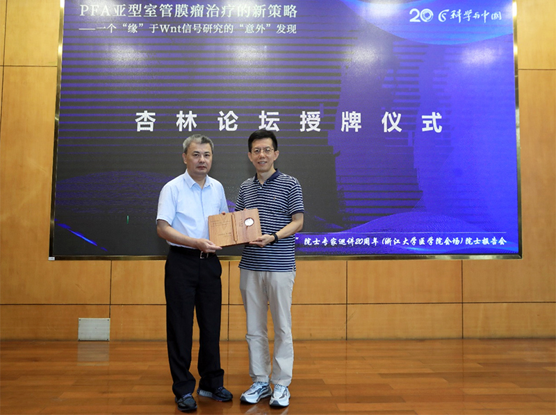 学术报告开始前,李晓明为李林院士颁发了“杏林·名师名家论坛”纪念铭牌。此次李林院士的莅临,为银河线路检测中心规格最高的“杏林·名师名家论坛”增添了新的光彩。