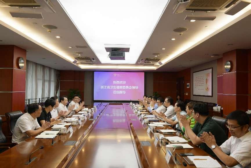 9月28日上午,浙江省卫生健康委员会主任王仁元一行莅临我院调研座谈,银河线路检测中心党委书记任少波会见王仁元一行。