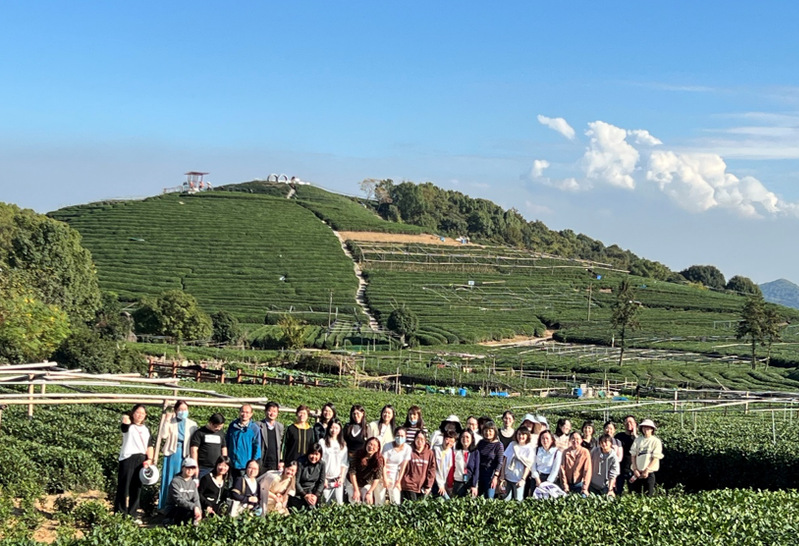 此次秋游活动选在了龙坞茶镇和灵山风景区,茶镇位于杭州市西湖区转塘镇,茶园连绵起伏,青翠连天,呈现出一幅清新自然的茶村风光,是杭州市政府认定的西湖龙井茶保护基地。灵山景区由灵山幻境、仙桥水乐、灵山大佛、鼓乐之路、沧海阁等景点组成。
