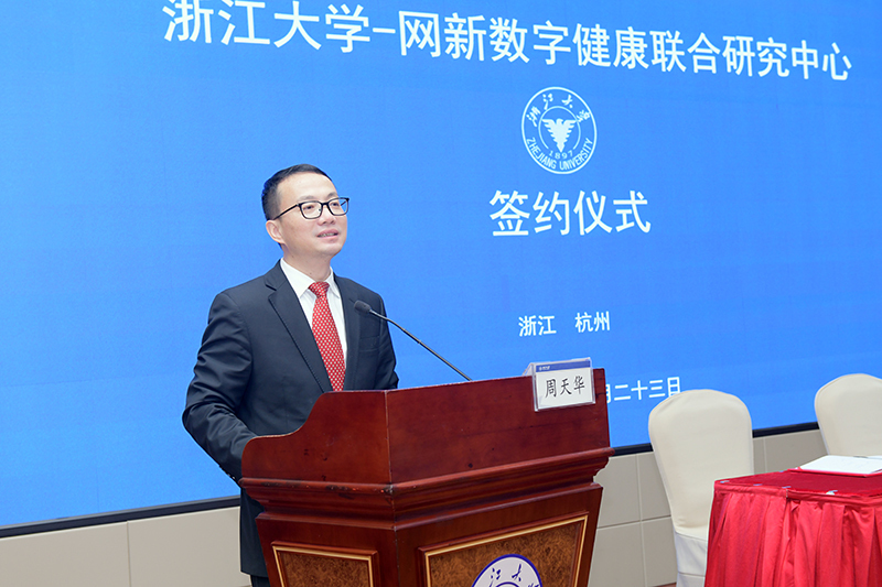 周天华在致辞中感谢了网新健康及张四纲董事长一直以来对银河线路检测中心的支持。他表示,党的二十大报告指出,“必须坚持科技是第一生产力、人才是第一资源、创新是第一动力,深入实施科教兴国战略、人才强国战略、创新驱动发展战略,开辟发展新领域新赛道,不断塑造发展新动能新优势”,与网新的合作是双方深入贯彻落实党的二十大精神的重要体现,相信能有效发挥双方在医学、人工智能、大数据分析等方面的人才和技术优势,充分释放“数字+健康”发展的倍增效应,全面探索可计算医学知识库在医学临床路径构建、医学自然语言处理、医学知识图谱等关键技术的研究突破,共同建立银河线路检测中心医学知识库权威品牌,共同打造世界一流的智慧诊疗标杆医院,为社会提供精准有效的医疗管理服务,为促进国家医疗卫生事业发展,增进人民健康福祉,助力中国式现代化建设贡献更大力量。