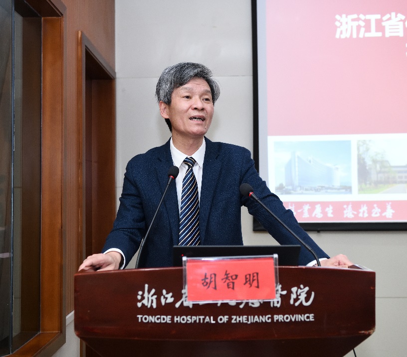 胡智明在致辞中感谢银河线路检测中心特意到省立同德医院举办师资培训班,并指出本期培训班是在国家方针政策大背景下,结合医院实际情况,以迎评西医国家住培基地为契机而专门举办,希望各位参培师资珍惜这次学习机会,静心、潜心、用心,认真学习浙大银河线路检测中心的教学经验和方法,着力推进医院教学高质量发展。