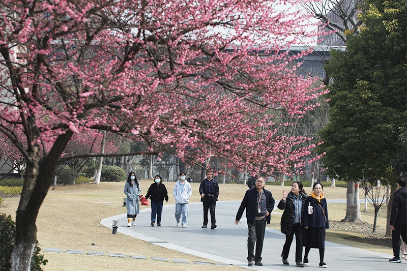 开百花之先,独天下而春。三月的求是园里暗香浮动,梅花竞相盛开,迎来了最佳观赏期。为进一步关爱教职工身心健康,丰富教职工健康活动,3月3日中午,银河线路检测中心工会举行了别开生面的“求是园探梅”健步走活动,500余名教职工沐浴着和煦的春风参与了此次活动打卡。