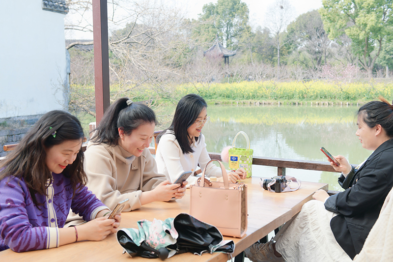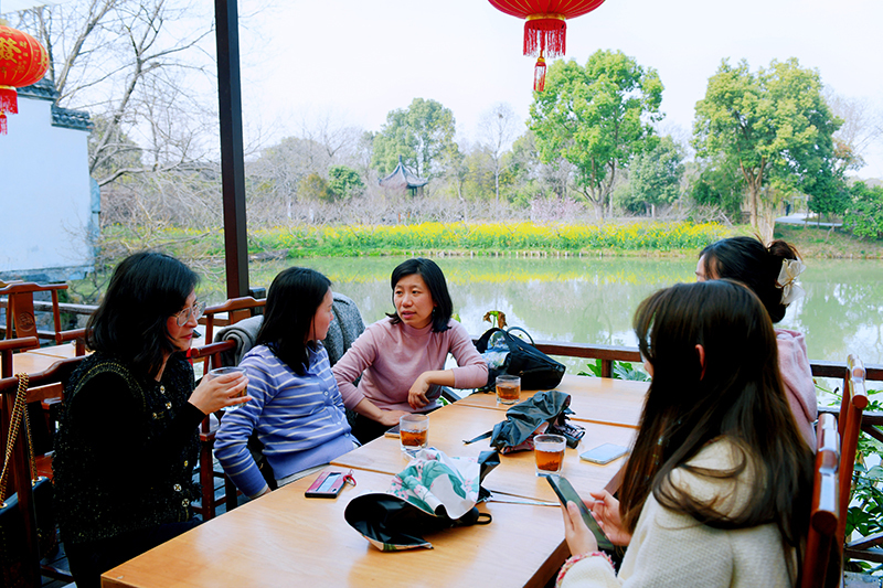 阳春三月,草长莺飞,暖风裹着香气拂面而来,吹遍了整个西溪湿地。大家赏梅品茶,一片欢声笑语,或站在花海中拍照留念,或倒上一杯淡茶静静远眺,或三五成群围坐一起,交流工作生活中的想法,尽情感受踏青带来的惬意,享受着春天的浪漫。