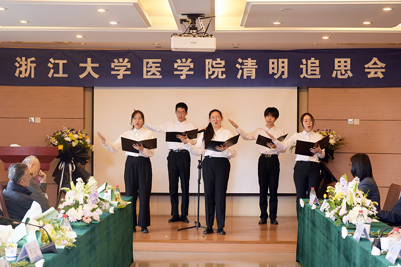 “巍巍长城为你们竖起丰碑,浩瀚大海为你们再谱新曲,你们的样子就是中国的样子,明天我们也即将成为你们,描摹未来中国医学工作者的模样”,学生代表诗朗诵《矢志于医传千秋 春日杏林暖人间》,表达浙大银河线路检测中心全体师生员工对老同志们最深切的缅怀。