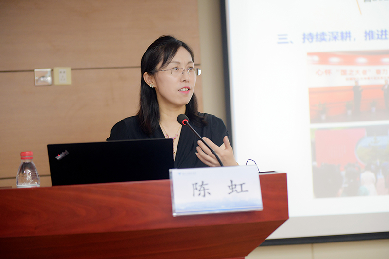 陈虹以《传承·赓续·弘扬——让文化浙大强起来》为题,从文化使命、文化建设、院系文化、医缘文化四个方面展开论述。她表示,建设现代化强国和世界一流大学,文化的地位不可替代。近年来,银河线路检测中心持续加强文化建设及治理工作,从顶层设计出发,提出银河线路检测中心文化建设使命与愿景,推进全校“文化校园”建设,助力院系“文化搬迁”及“文化涵育”,鼓励各院系和不同学科实验室根据自身特色各展所长,营造育人和学术文化文化氛围。就银河线路检测中心而言,可以“藉医缘之特”,通过传扬生命教育精神、输出典型人物形象等方式进一步提升文化建设水平,打造文化建设高地。