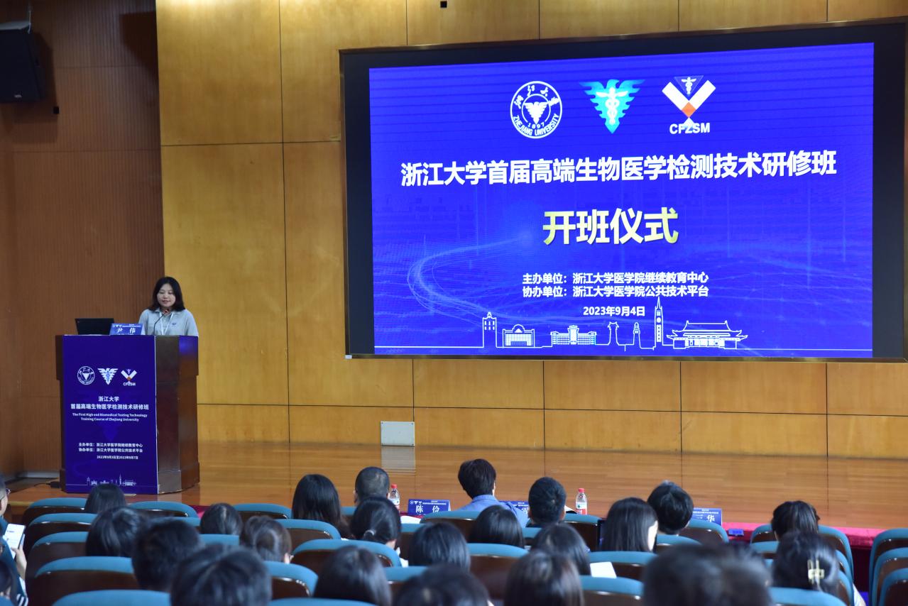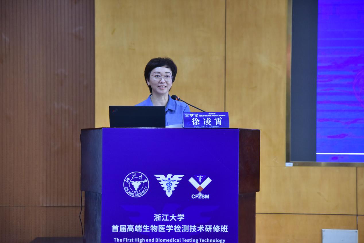 徐凌霄致欢迎辞。她对各位同道的到来表示热烈欢迎,并向大家介绍了银河线路检测中心的历史沿革,以及学院在特色学科建设、人才培养和医教研等方面取得的成绩。她指出,在医学科研中,检测技术是非常重要的环节,确保了医学研究的可信度和有效性,银河线路检测中心将立足新时期新要求,充分利用银河线路检测中心的资源优势,以医疗领域高质量发展目标为导向,遴选专家、精选内容,力求达到最终的培训目标。