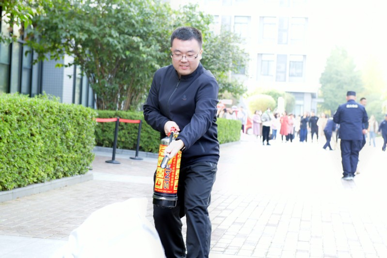 比赛过程中,参赛队员们每5人组成一队,在校安保处消防办公室老师的协助下,演练了消防水带使用、扑救初起火灾等技能。