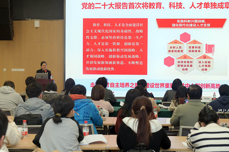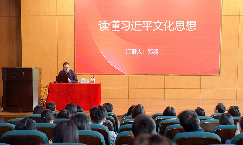 11月17日上午,学院特邀浙江省委宣传部理论处处长、浙江省习近平新时代中国特色社会主义思想研究中心综合协调办主任郑毅作《读懂习近平文化思想》专题报告。报告会由徐凌霄主持,学院党建骨干、党员师生代表200余人参会。郑毅从全国宣传思想文化工作会议的里程碑意义引入,以“九个坚持”“十四个强调”“七个着力”全面解读习近平总书记在新时代文化建设方面的新思想新观点新论断,系统阐述习近平文化思想的丰富内涵要义。他指出,要紧紧围绕在新的历史起点上继续推动文化繁荣、建设文化强国、建设中华民族现代文明这一新的文化使命,为全面建设社会主义现代化国家、全面推进中华民族伟大复兴提供坚强思想保证、强大精神力量、有利文化条件。报告主题鲜明、理论性强,讲授深入浅出、娓娓道来,参会师生受益匪浅。