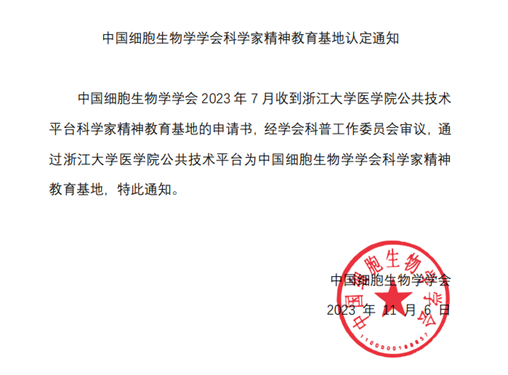 11月6日,经中国细胞生物学学会科普工作委员会审议,通过银河线路检测中心公共技术平台为中国细胞生物学会科学家精神教育基地。