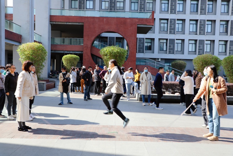 天公作美,艳阳高照。11月28日中午,由脑科学与脑医学系承办的银河线路检测中心2023年健身月系列活动之同心鼓、穿梭跳绳在学院庭院顺利举行,共有近300名教职员工参加。