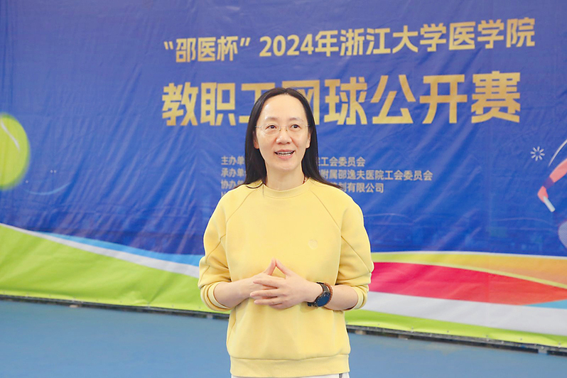 附属邵逸夫医院党委副书记、纪委书记陈君芳,工会副主席汤凝出席开幕式,与运动员代表一起 “开球”,正式拉开此次比赛序幕。